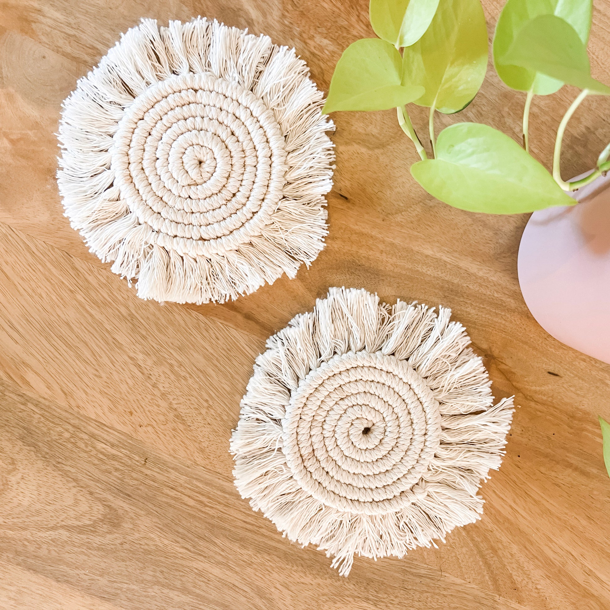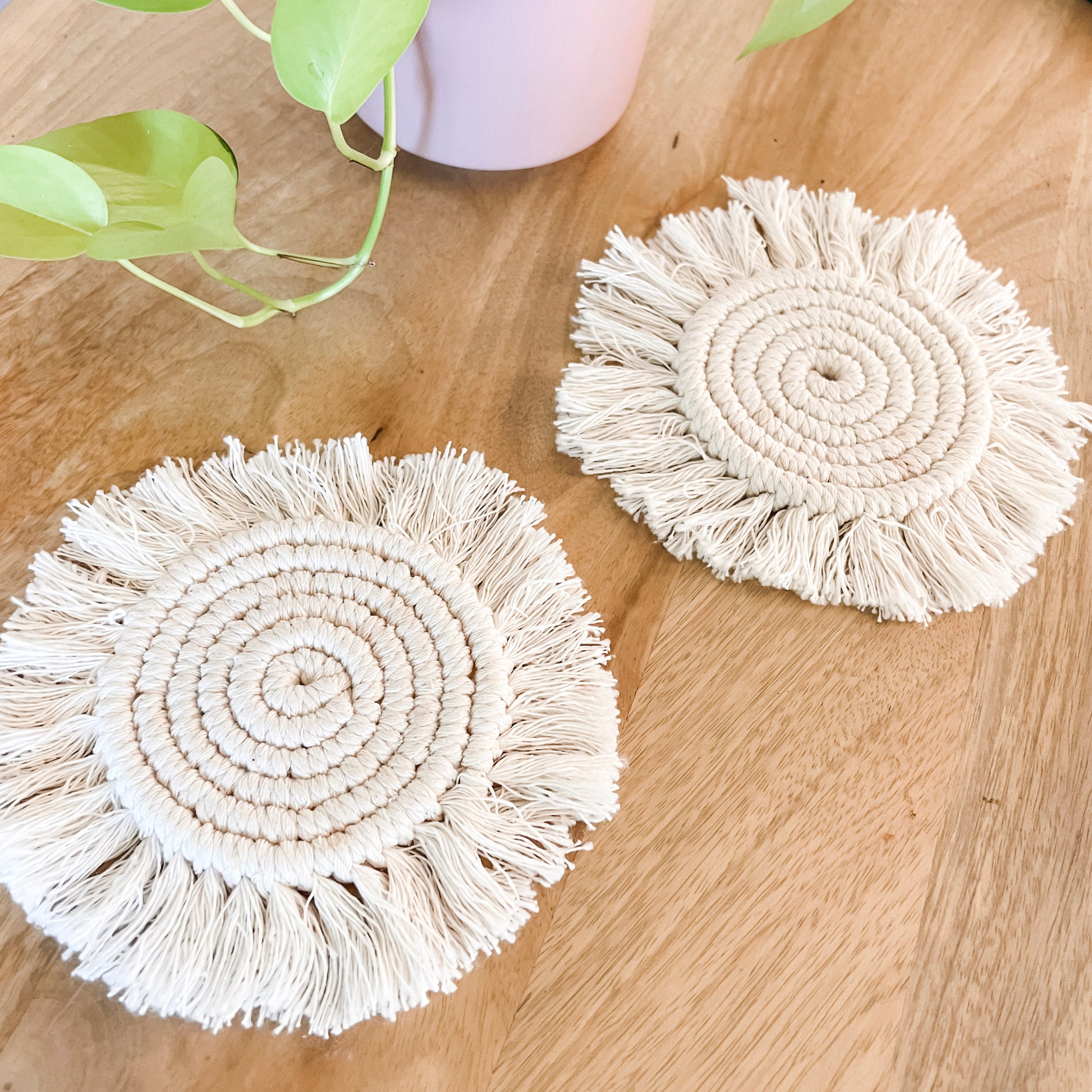 Get ready to add a touch of boho charm to your coffee table with our hand-woven coaster. Its beautiful, intricate design featuring fringed edges gives it a unique and sophisticated vibe that will elevate any room in your home.