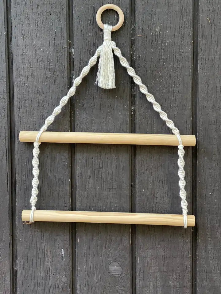The Astrid Macrame and Wooden Dowel Toilet Roll and Hand Towel Holder is a unique and stylish addition to any bathroom. Handmade with natural materials, the hanger adds a touch of warmth and charm to your bathroom decor. Whether you're looking for a rustic or boho-chic look, the Astrid will bring your vision to life.